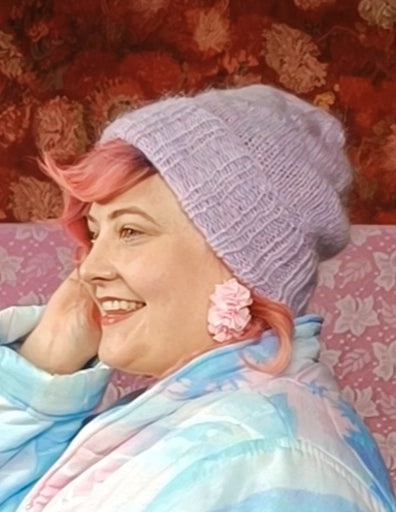 Mummin käsineuloma mohair pipo laventeli