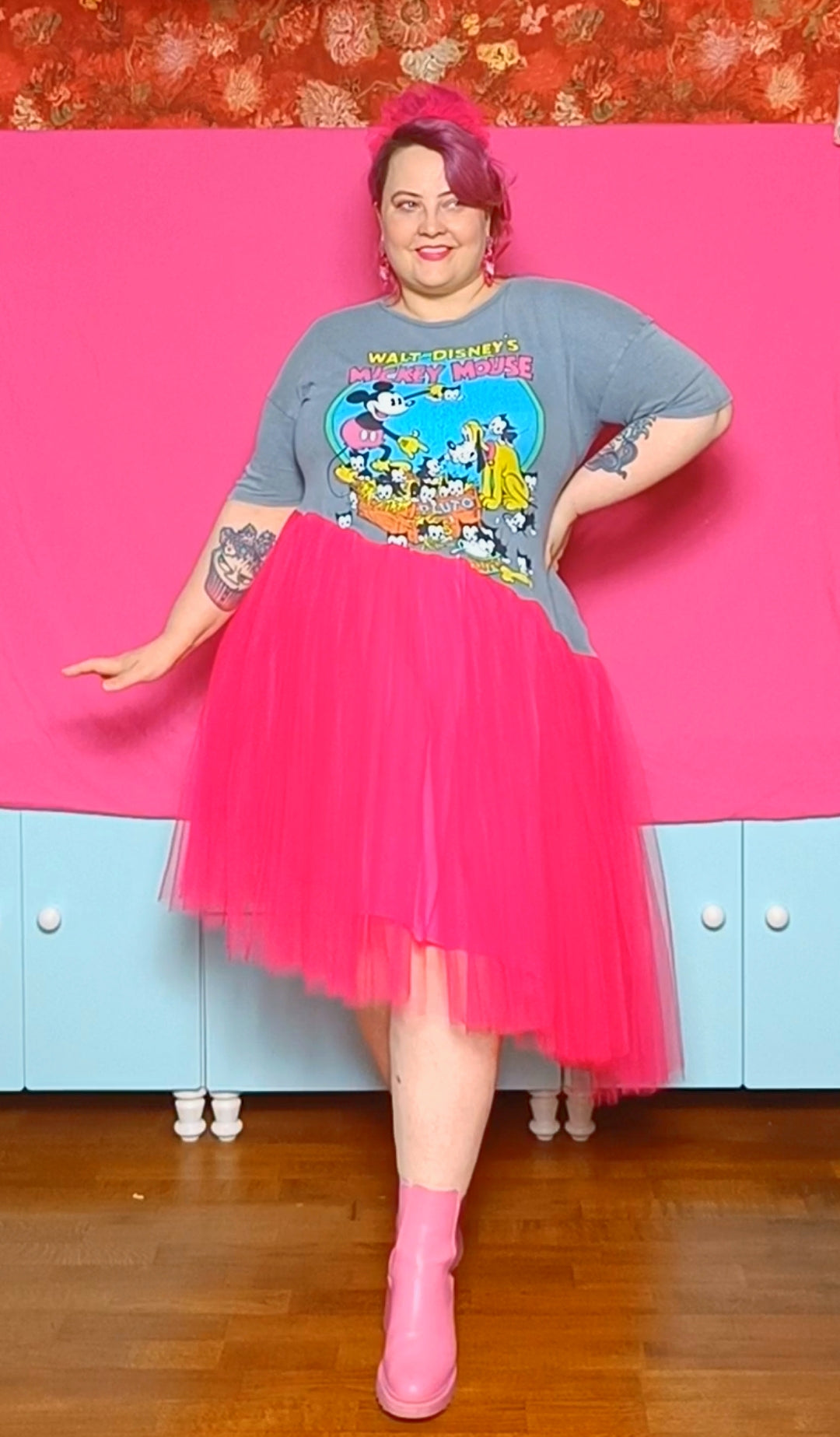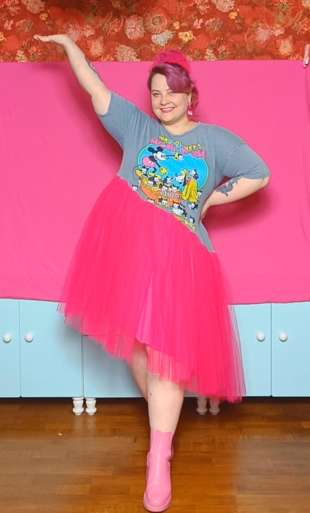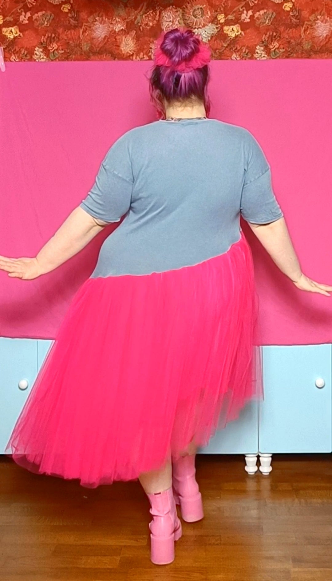 Kierrätetty t-paita muuttui tyllimekoksi.