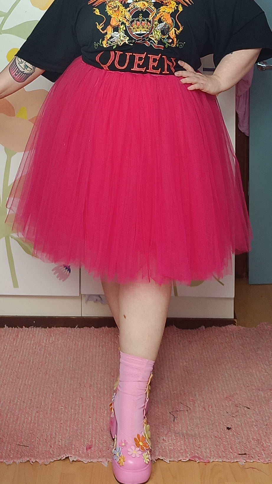 Voit myös ripustaa hameen henkariin kylpyhuoneeseen lampimän suihkun/kylvyn ajaksi, jolloin kylpyhuoneen höyry siloittaa tylliä.