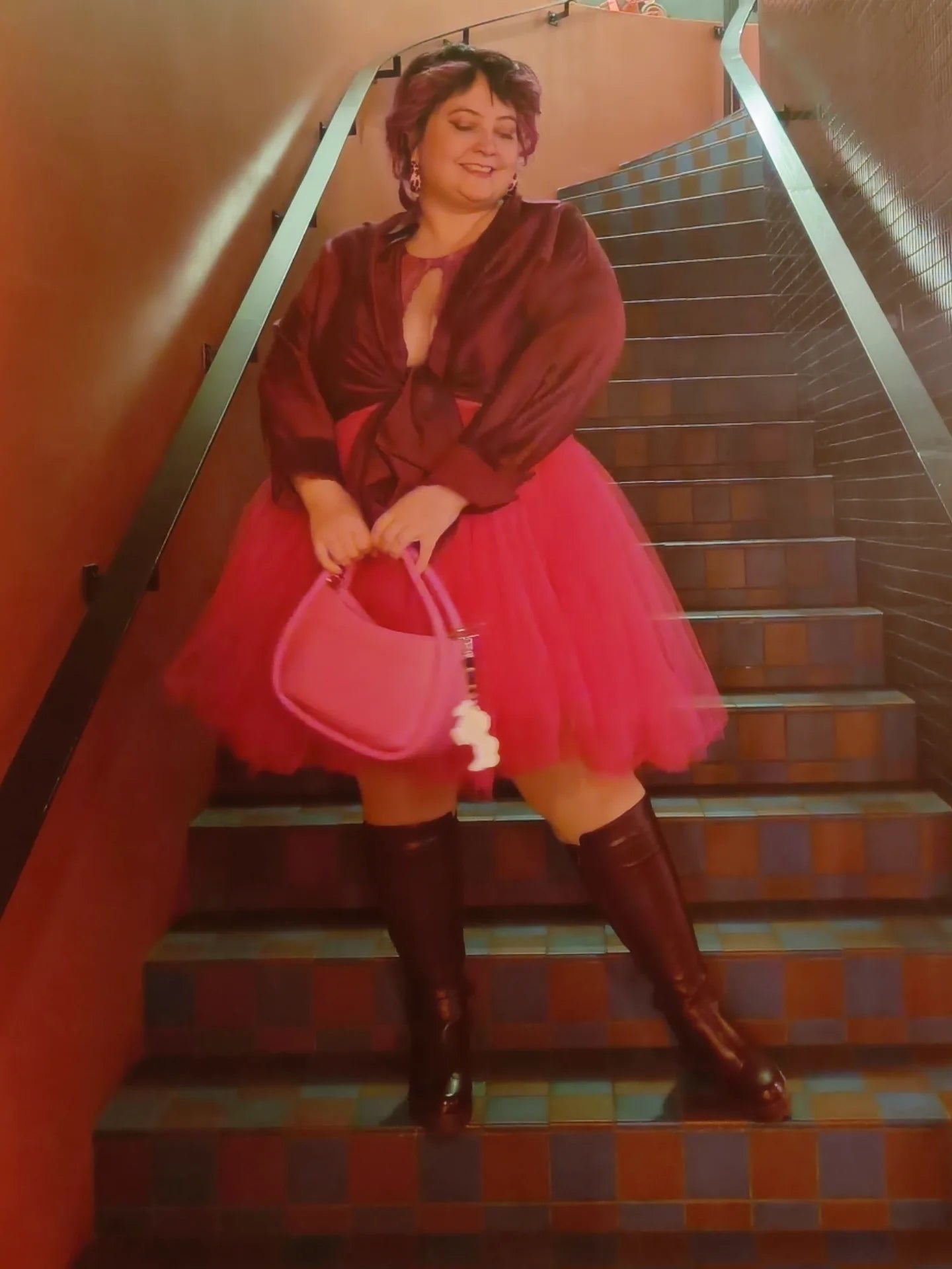 Mallin rinnanympärys 128cm, Vaatekoko 48/50 ja pituus 165cm. Päällä värissä Minttu 80cm pituus ja värissä fuksia 60cm pituus.